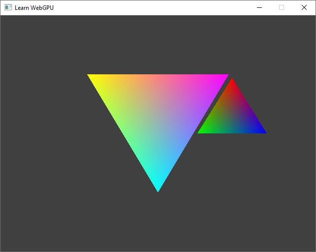 I changed the background color (clearValue) to Color{ 0.05, 0.05, 0.05, 1.0 } to better appreciate the colors of the triangles.